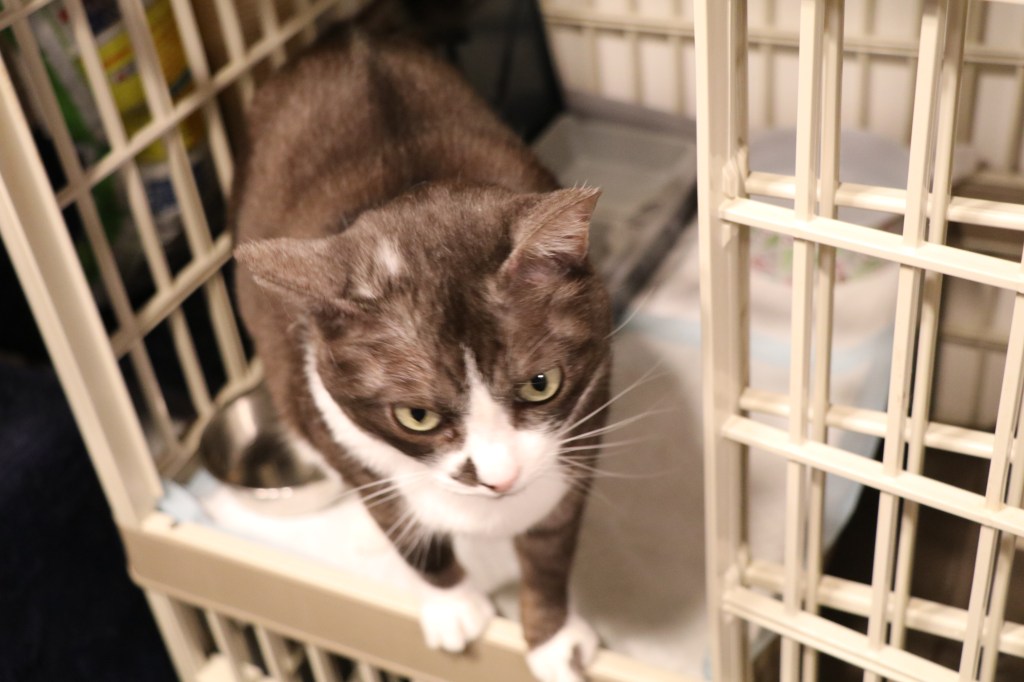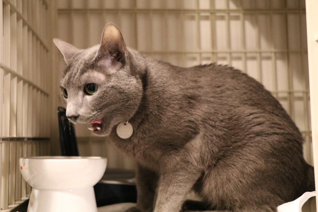 野良猫だったころの習性?粒が小さいから?かえでもご飯は丸飲み派。